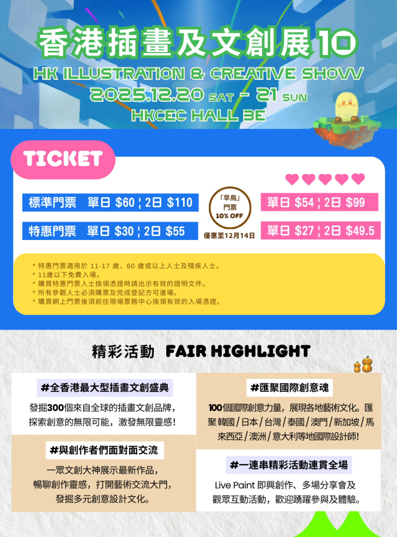 15. 如有任何與「香港插畫及文創展 10」門票相關之爭議,主辦單位的決定將為最終並有約束力。
