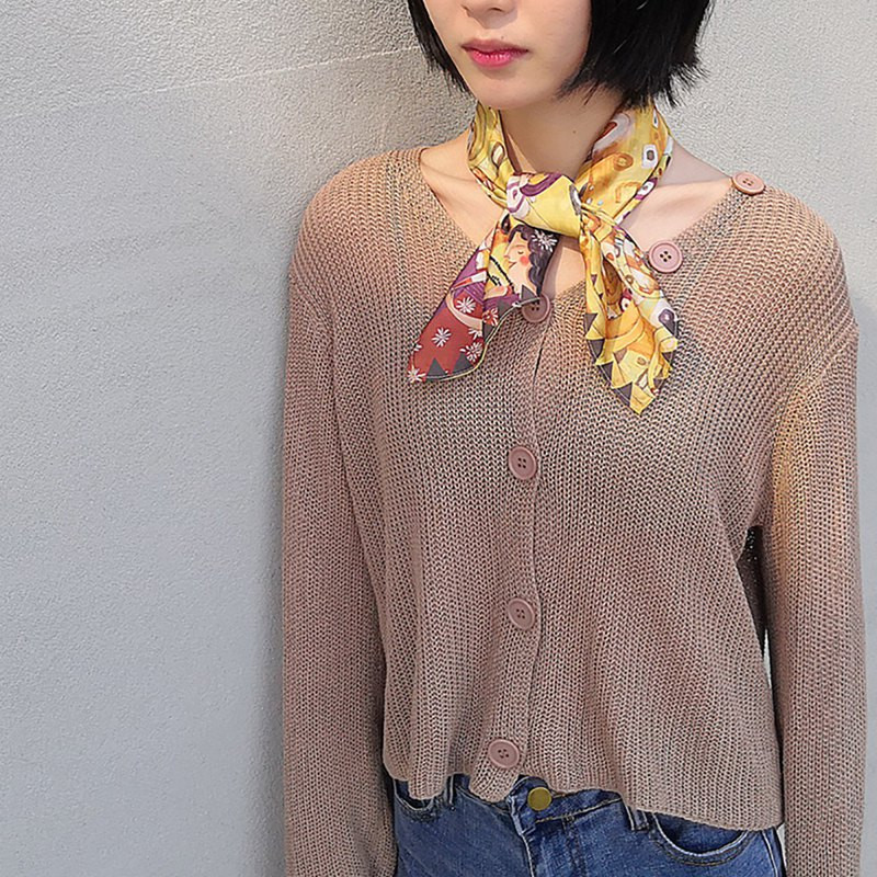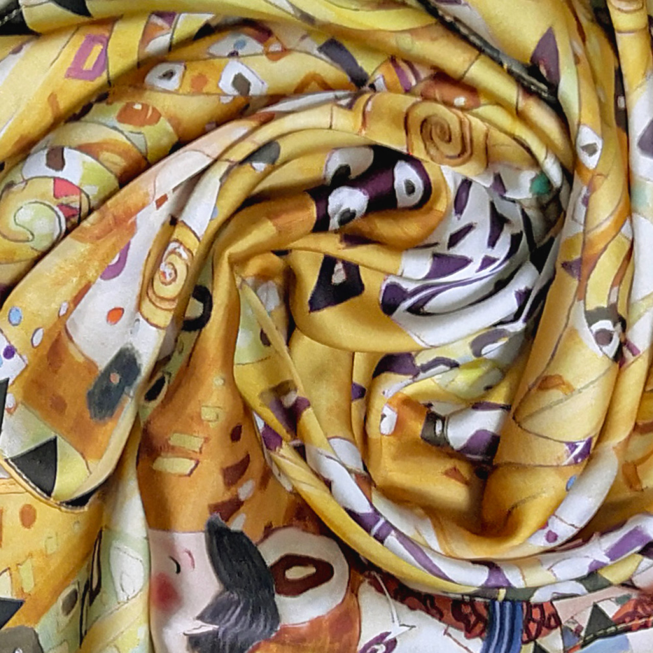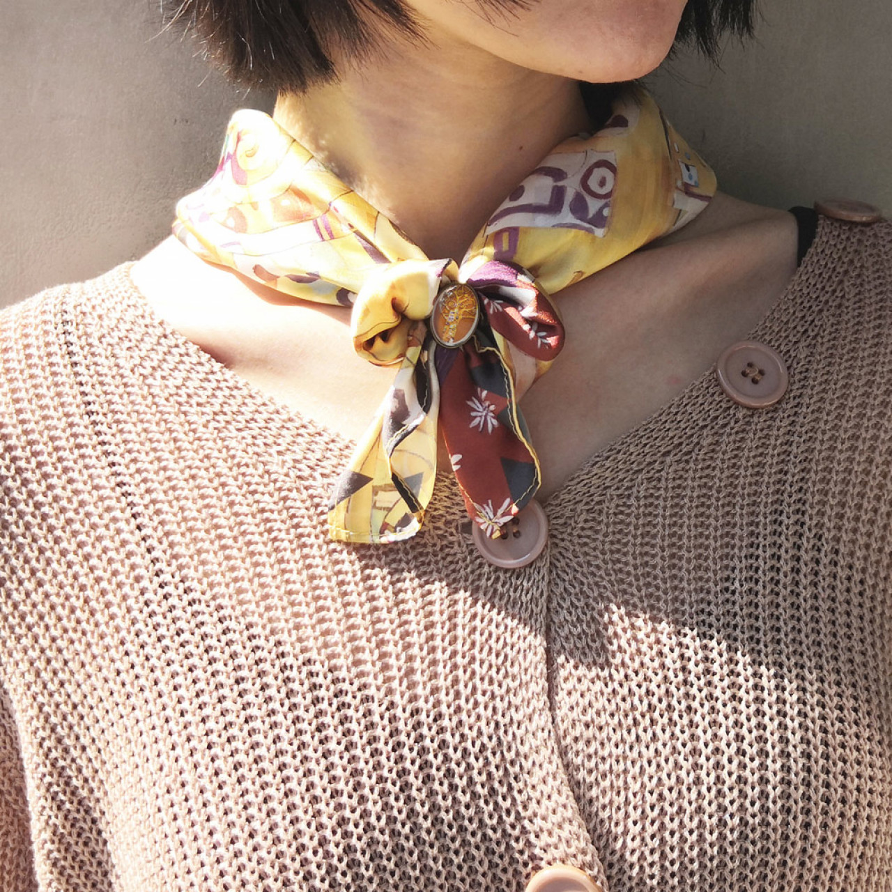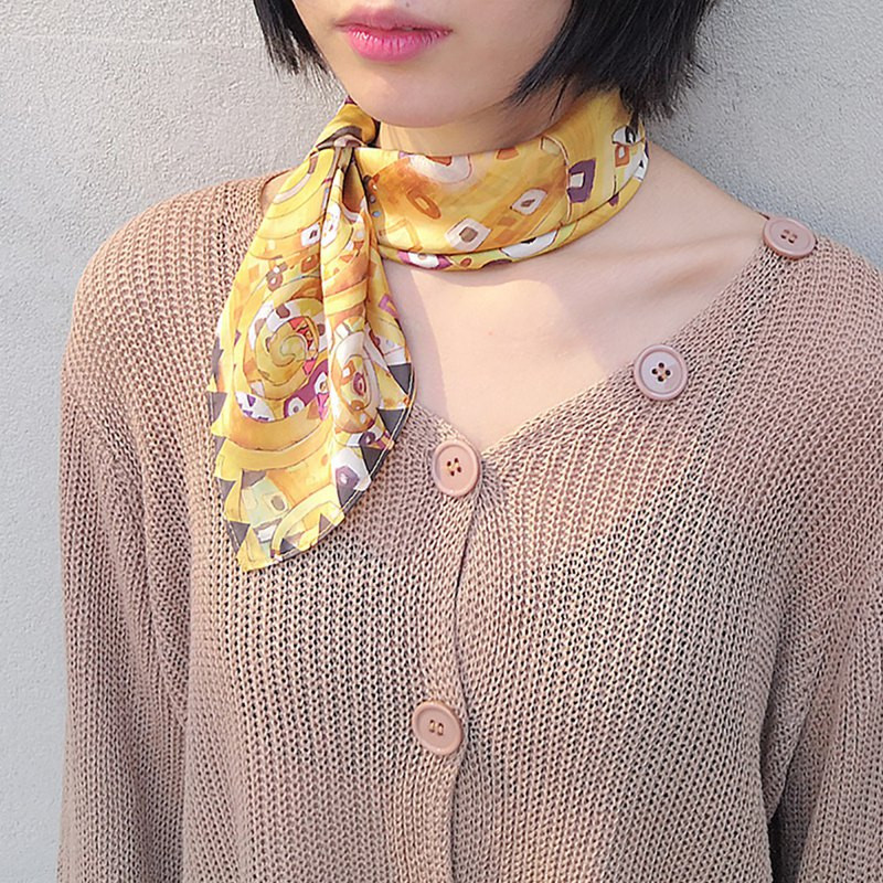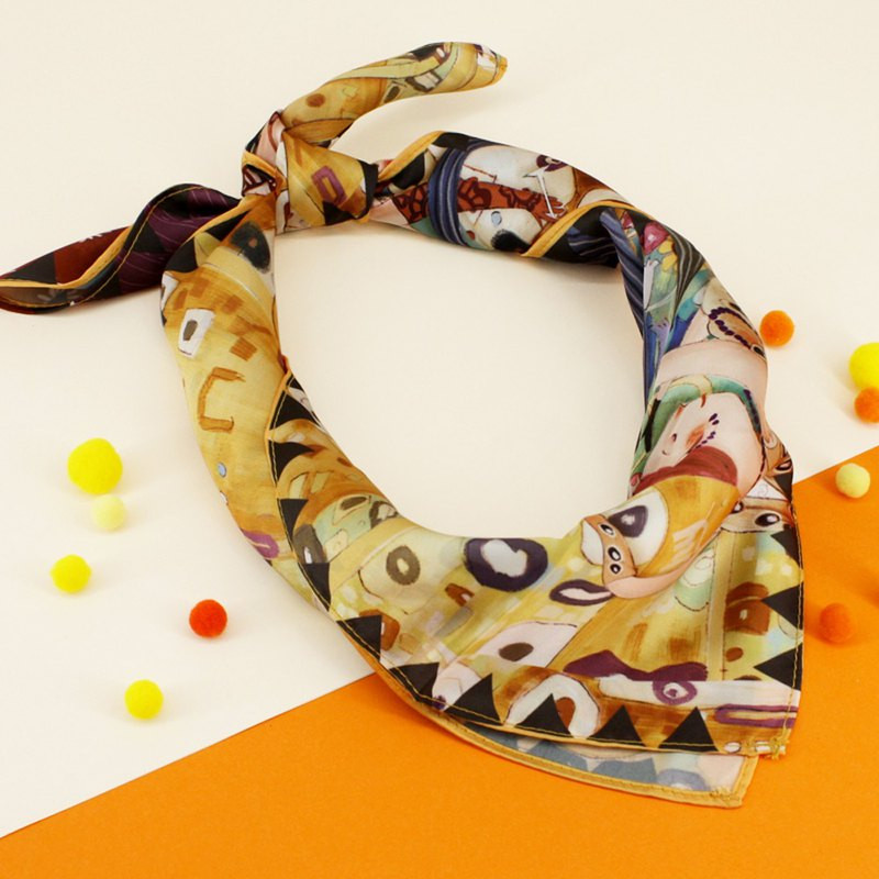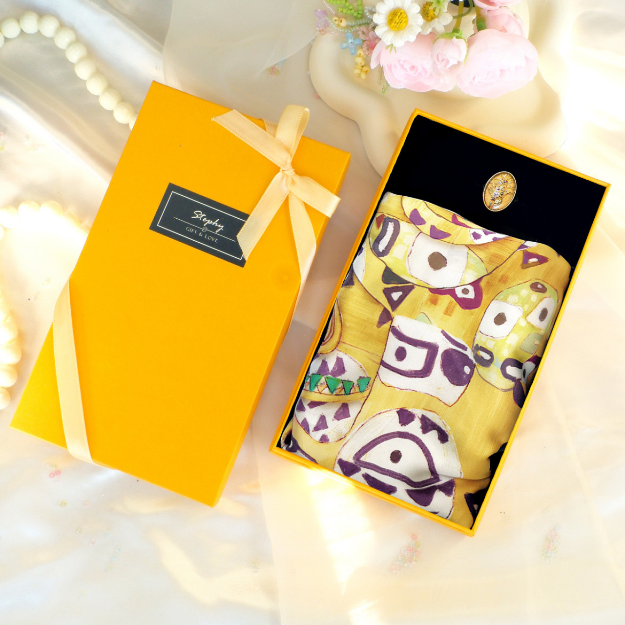 每個禮物盒都是美麗精心手工包裝, 內有一條絲滑方巾配搭一個同圖插畫絲巾扣